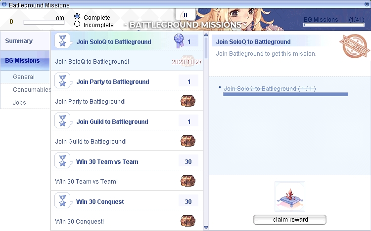 Battleground Mission Window